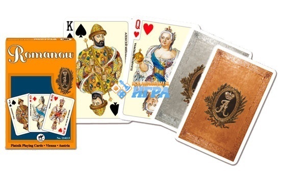 Купить игральные карты Династия Романовых55 листов можно в нашем интернет магазине. Художественные лица и рубашка. Стандартный индекс. 55 листов. Размер карт - 58х89 мм. игральные карты Piatnik