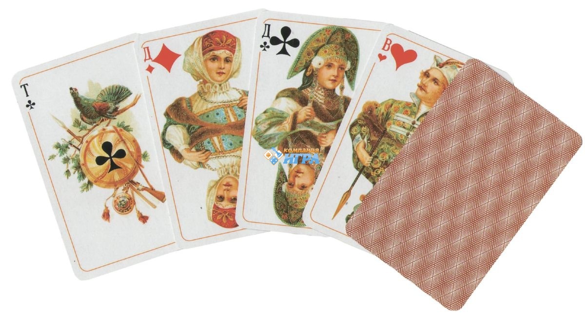 Купить игральные карты Золотая Россия36 листов можно в нашем интернет магазине. Художественные лица и рубашка. Стандартный индекс. 36 листов. Размер карт - 58х89 мм. купить игральные карты Piatnik